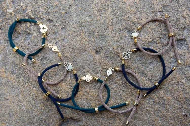 Bracelet Sacré Coeur dessiné et réalisé par mes soins dans mon atelier, composé d’un motif en laiton mat ajouré artisanalement et d’un cordon réglable.